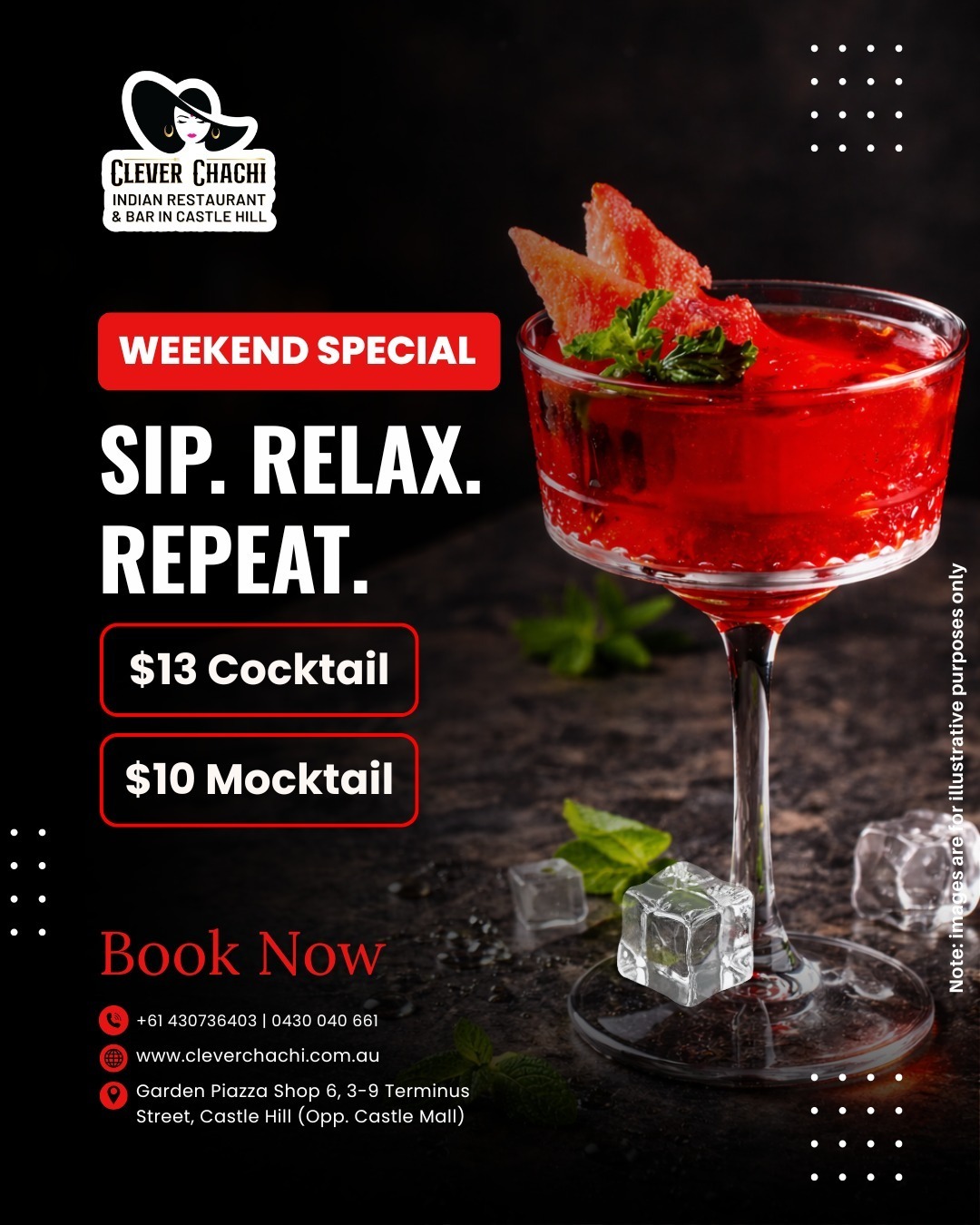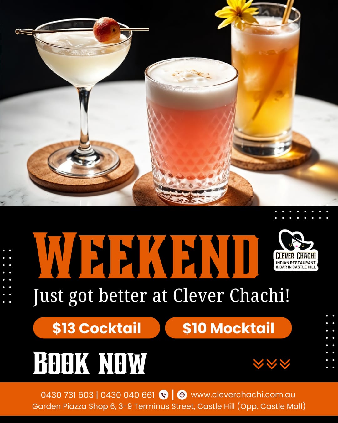 At Clever Chachi — the best Indian restaurant and bar in Castle Hill — we raise a glass when there’s something to celebrate, we sip to let go when things don’t go as planned, and when nothing’s happening at all? We pour a drink and make the moment special.