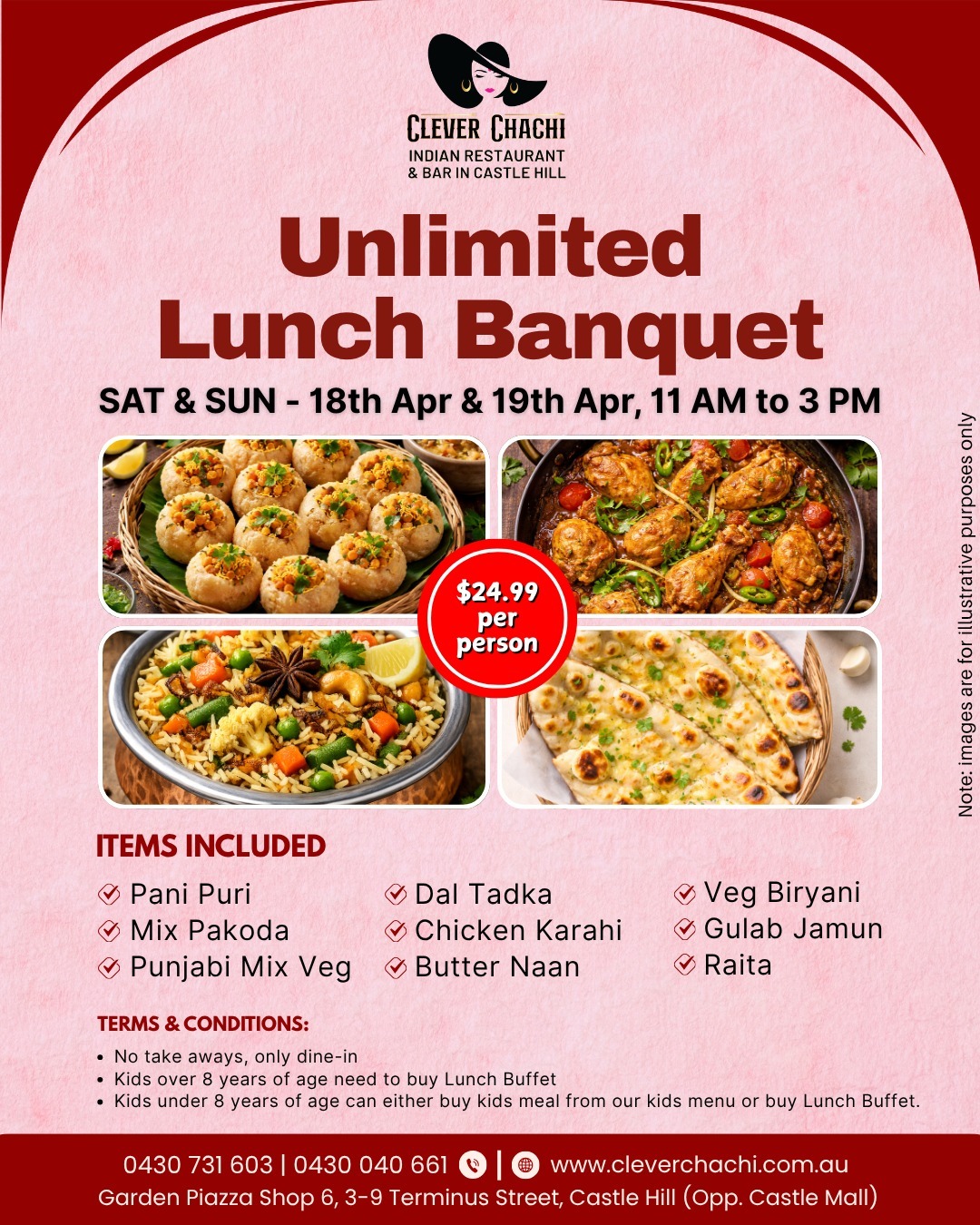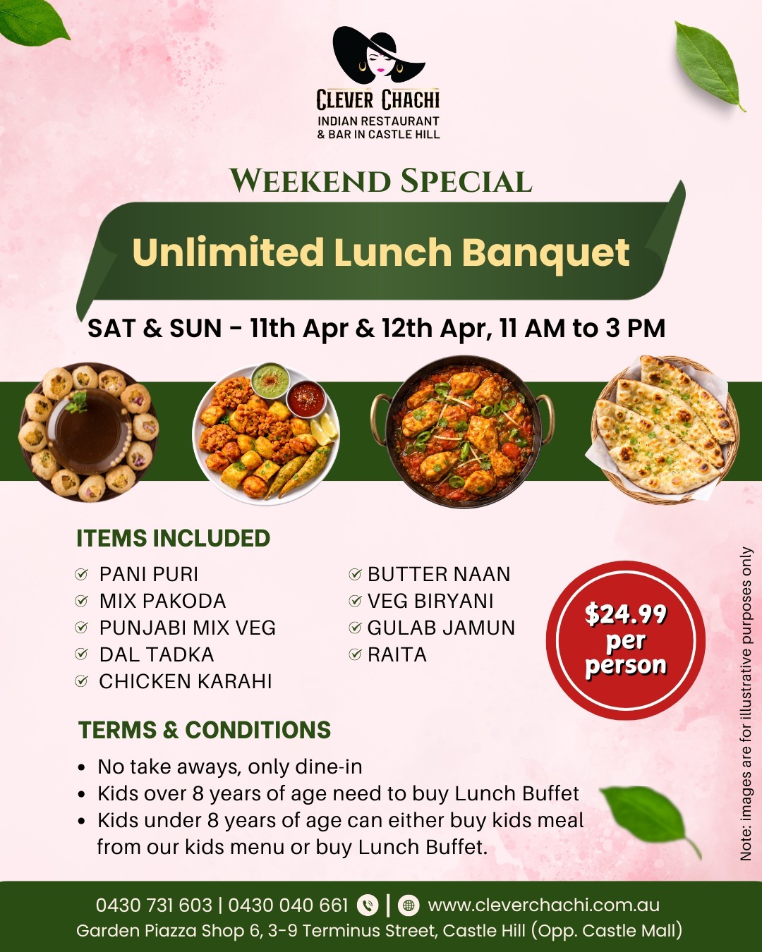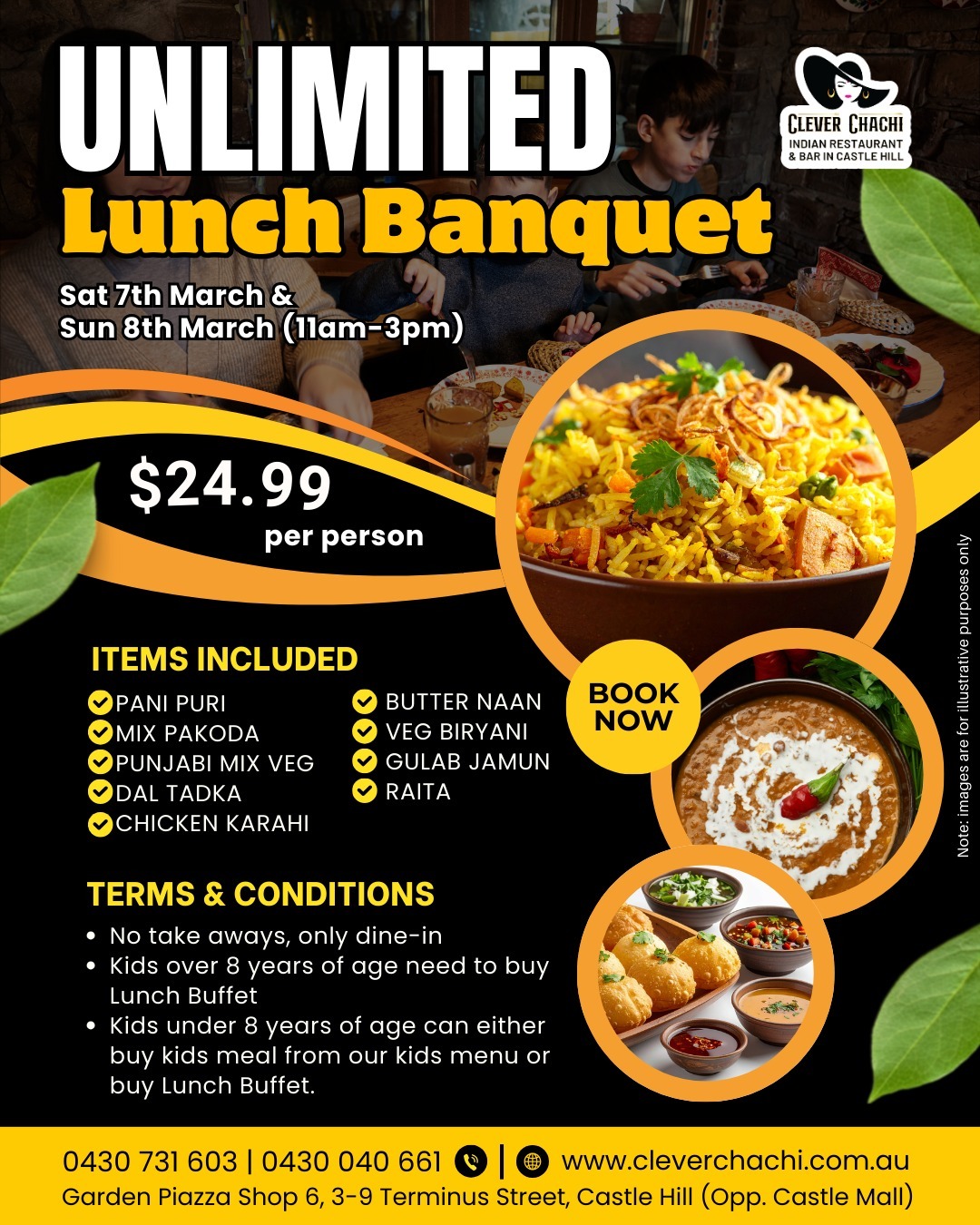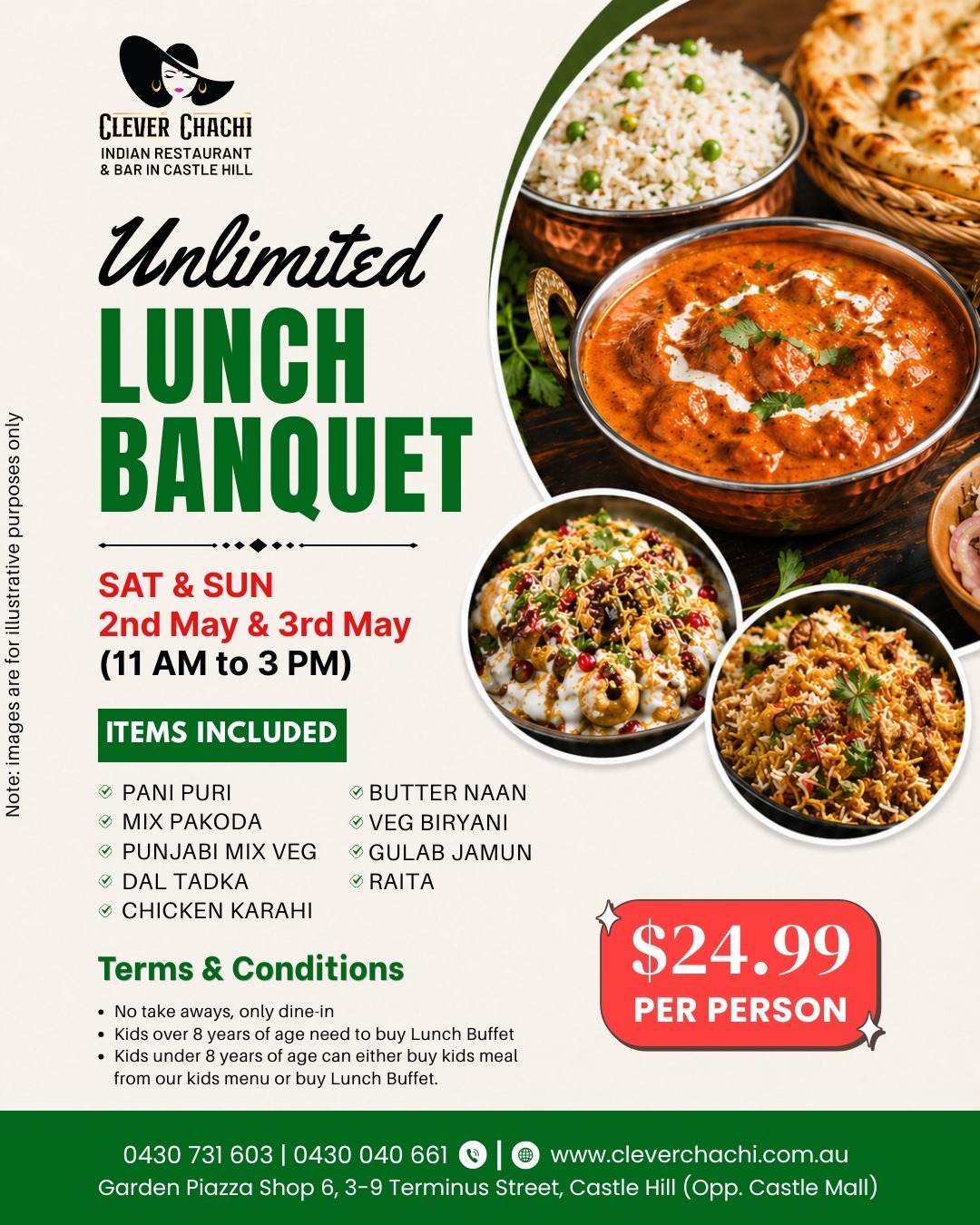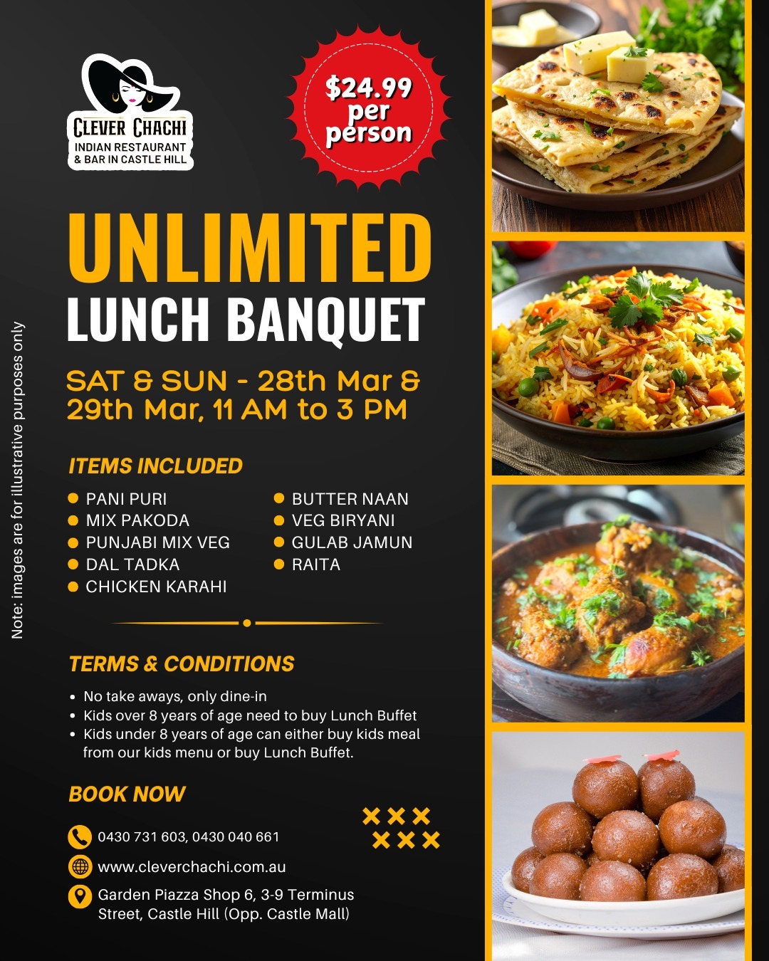 Unlimited Buffet : 11:00AM – 03:00PM